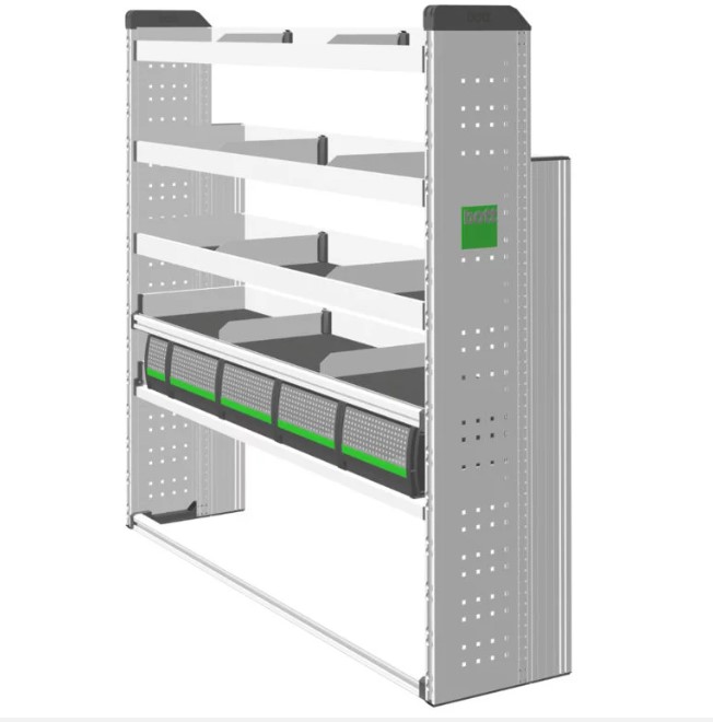 Alumiinirunkoinen kaluste takaa keveyden, jota kautta autoon saadaan maksimaalinen kapasiteetti kuorman lastaukseen