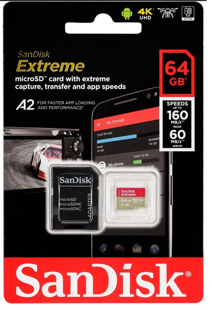 Nopeusluokka A2 / Video Class V30 / UHS-I U3 / Class10. Lukunopeus 160MB/s ja kirjoitusnopeus 60MB/s. Sopii esim DJI Phantom 4 / Mavic 2 / Mavic Air / GoPro Hero 6 / Hero 7 jne. kameroihin.